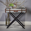 Perfect in a hallway or as a side table. Sheathed in galvanized metal with faux leather trim, it opens for fabric-lined storage. Wood frame and base. 32"w x 30"h x 15"d. Simple assembly. No rush delivery. Ships to 48 contiguous states only. ($10.00 additional shipping)