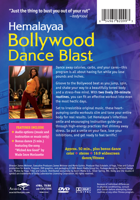 Get fit with Bollywood dance moves and infectious bhangra beats. Known for her playful spirit, fitness star and yogini Hemalayaa leads sexy, sassy, fun workouts that burn fat and tone your whole body. Bollywood Dance Blast features two heart-pumping 20-minute routines. As you jump, spin, and shake, you’ll lose pounds and inches and dance away stress. Set to irresistible original music, these high-energy practices leave you feeling terrific and put a smile on your face. 50 min. on 1 DVD.