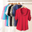 It’s a whole new tee. Cowl neck softly frames your face. Elbow-length sleeves roll up and button for a shorter, sportier look. Shirttail hem adds graceful curves. Cotton jersey with a bit of spandex, sizes XS(2–4), S(6–8), M(10–12), L(14–16), XL(16–18). Imported. Semifitted.
