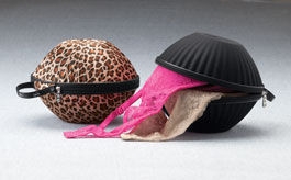 Protect pricey bras and other delicates during travel. CupCase prevents squashing, snagging, and creasing. Zip-shut case holds 3-4 bras (plus light jewelry, hair ties, and panties) and wiggles its way into your luggage or drawer. About 7" diameter, 6" high. Specify A/B (cup size) or C/D; specify Cheetah or Black.