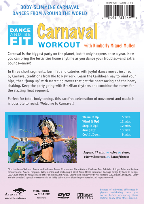 When exercise is fun, you’re more likely to do it, and what’s more fun than dancing? Burn fat and calories, melt unwanted pounds, reduce stress, and tone your whole body with this enjoyable workout. Kimberly Miguel Mullen teaches you joyful dance moves inspired by Carnaval traditions from Rio to New York City. Learn the Caribbean way to wind your hips, then jump up with marching moves that get the heart racing and the booty shaking. Keep the party going with Brazilian rhythms and combine the moves for the sizzling final segment. A carefree celebration of movement and music. 47 min. on 1 DVD.