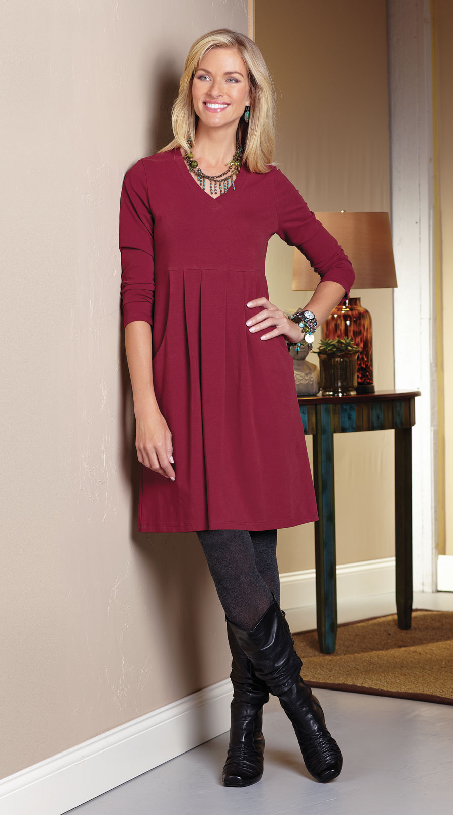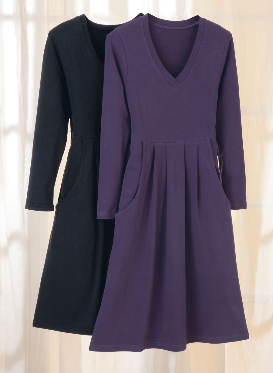 Our best-selling Dani in chic classic black. High waist, braceletlength sleeves, deep pockets, back darts. Cotton-Lycra. Relaxed fit. Imported. XS(2–4), S(6–8), M(8–10), L(14), XL(16), 1X(18), 2X(20).