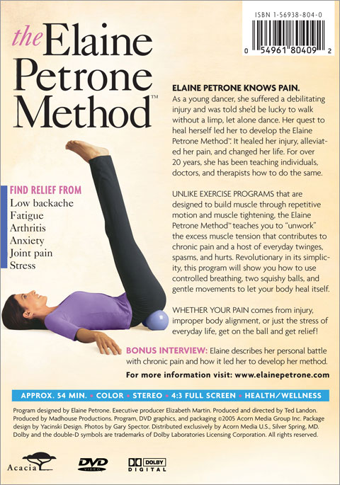 Elaine Petrone learned about pain -and pain relief- the hard way. She was on her way to realizing her dream of becoming a professional dancer and choreographer when she suffered a leg injury that led to debilitating chronic back pain. She tried every kind of conventional therapy, from orthopedists to chiropractors. Nothing worked, and most experts recommended that she stop dancing. As her leg withered to half its former size, she desperately sought out alternative practitioners. Some were dancers, others were students of Elsa Gindler, a teacher in Germany who understood the power of body awareness to release muscle tension and restore health and well-being. Elaine began incorporating what she learned from others with her own reading on reducing muscle tension, including sources going back a hundred years. Eventually, she combined all that she had learned from her experience healing herself and hundreds of others into the Elaine Petrone Method.