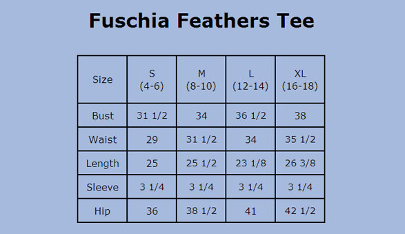 Moisture-wicking feather-print tee has cap sleeves, princess seams, and shirring at the V-neck. All are sueded cotton-blend jersey. Sizes S(4-6), M(8–10), L(12–14), XL(16–18). Imported. Fitted. For a looser fit on the tee, order one size up
