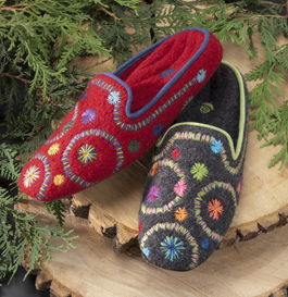 Leave these by your bed on winter nights. On chilly mornings, you’ll have fashionable feet and toasty toes. Slippers have embroidered uppers, contoured footbeds, enhanced heels and arches for long-wearing comfort, and