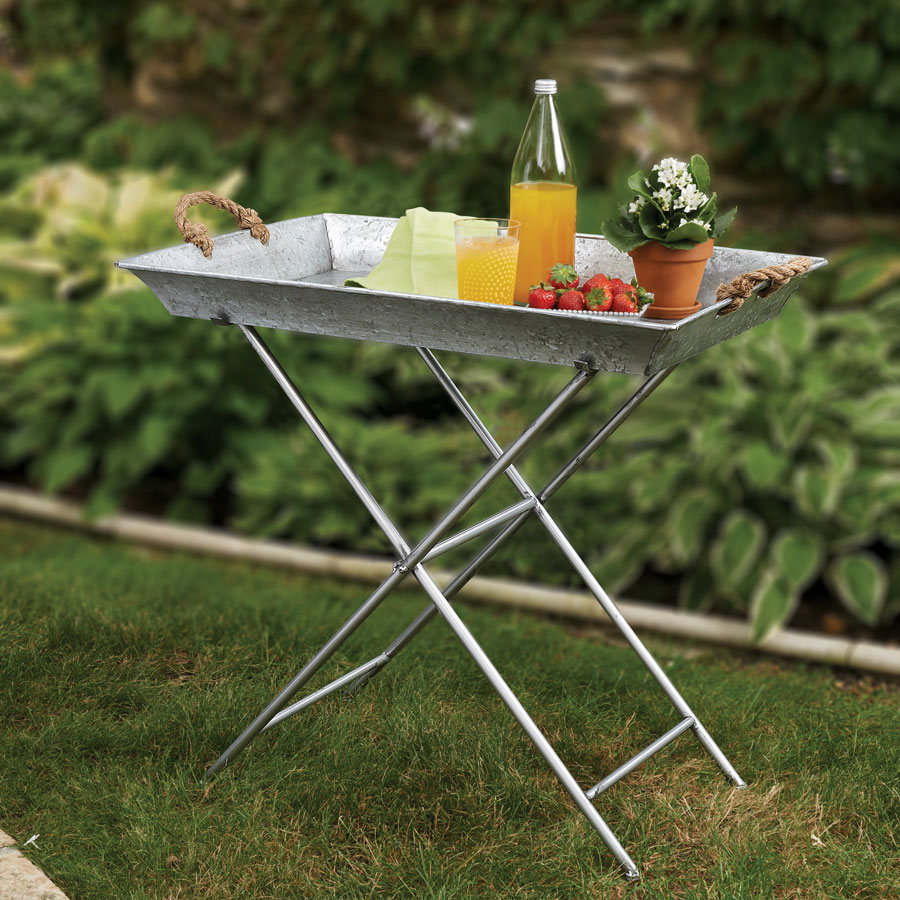 Rustic chic. The roomy tray lifts off for serving, and because it’s galvanized (zinc over steel) it will never corrode. So you can use it indoors or out. Jute handles, sturdy tray stand. 31"w x 30"h x 21"d. Simple assembly. Bring indoors for winter. No rush delivery. Ships to 48 contiguous states only.