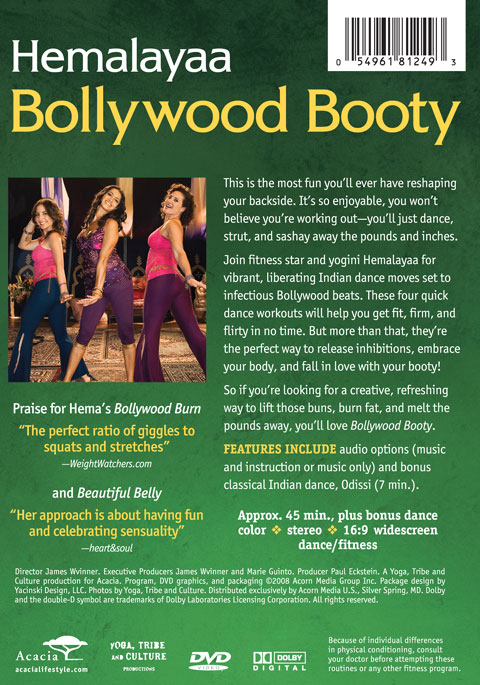Get fit with Bollywood dance moves and infectious bhangra beats. Known for her playful spirit, fitness star and yogini Hemalayaa leads sexy, sassy, fun workouts that burn fat and tone your whole body. Bollywood Booty makes reshaping your backside so enjoyable you won’t believe you’re working out. In four quick workouts, you’ll dance, strut, and sashay away the pounds and inches. More than that, you’ll release inhibitions, embrace your body, and fall in love with your booty. 45 min. on 1 DVD.