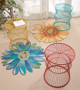 Thoroughly modern, endlessly useful pretty much anywhere, even as extra seating. Painted powdercoated steel wire is lightweight, strong, and portable. 15" diameter, 18" high. Specify Red, Yellow, Turquoise, or White. No rush delivery. Ships to 48 contiguous states only. ($10.00 additional shipping).